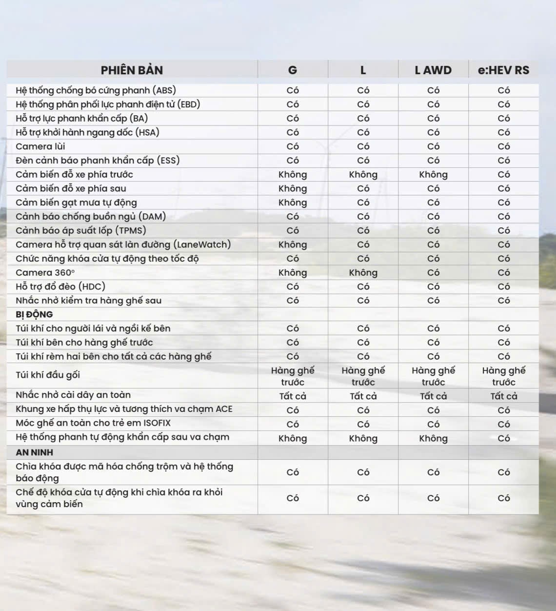 Đi cùng với đó là loạt trang bị tiện nghi đáng chú ý khác như: hệ thống âm thanh Bose 12 loa, điều hòa tự động, cửa sổ trời toàn, đèn viền nội thất, sạc điện thoại không dây, màn hình hiển thị thông tin kính lái HUD, đề nổ từ xa, thẻ chìa khóa thông minh, phanh tay điện tử,...