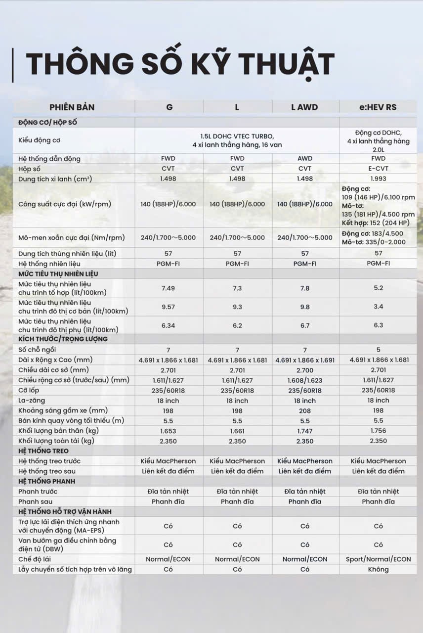 Honda CR-V e:HEV RS: | 1 tỷ 259 triệu đ |